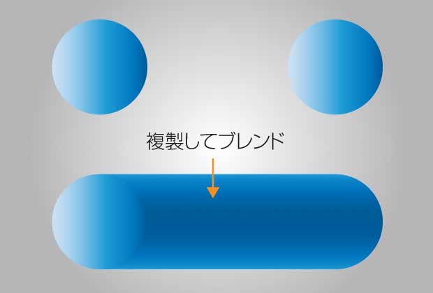 グラデーションカラーの図形を複製し、ここでブレンドを作成します。