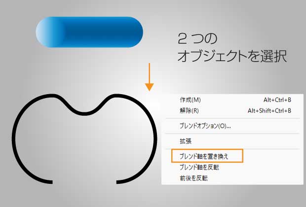 そのまま「ブレンド」のメニュー項目にある「ブレンド軸を置き換え」を選択します。