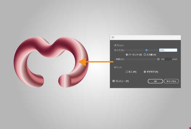 3Dツールで作成したように見えますが、ブレンドツールを応用するだけで簡単に作れます。
