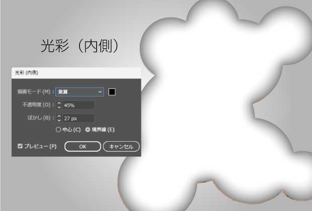 上の図形を光彩(内側)