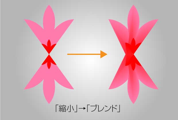 できたら2つのオブジェクトに「ブレンド」→「作成」します。