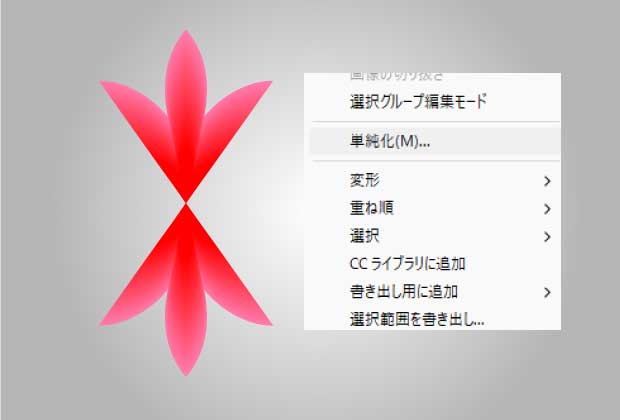 ブレンドをかけた時に、上記のような余分なパスがあれば、右クリックをして「単純化」を選択します。