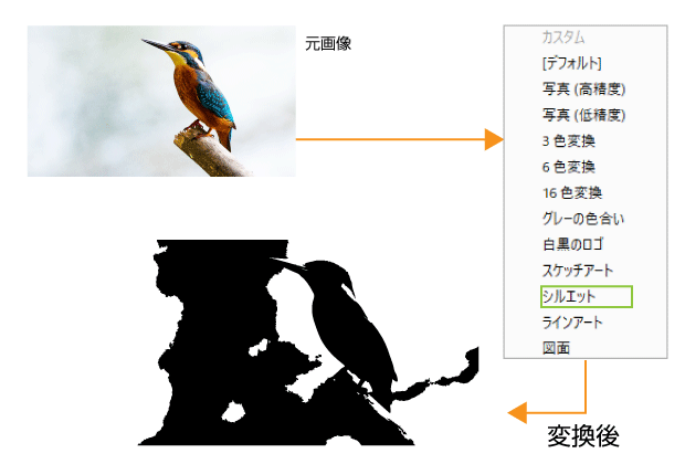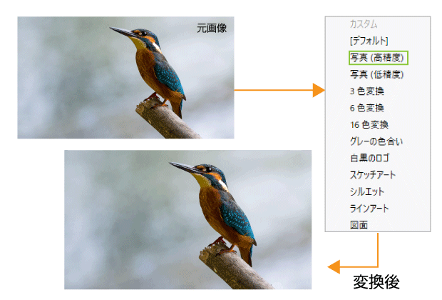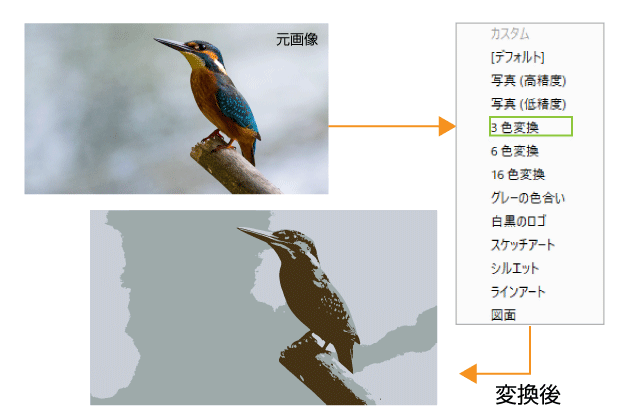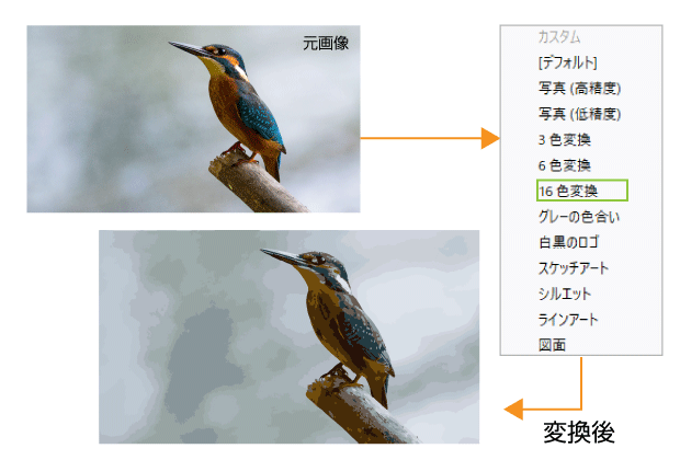 16色に変換されます。写真の色数によって変換される色にも差があるので、いろいろ試してみてください。