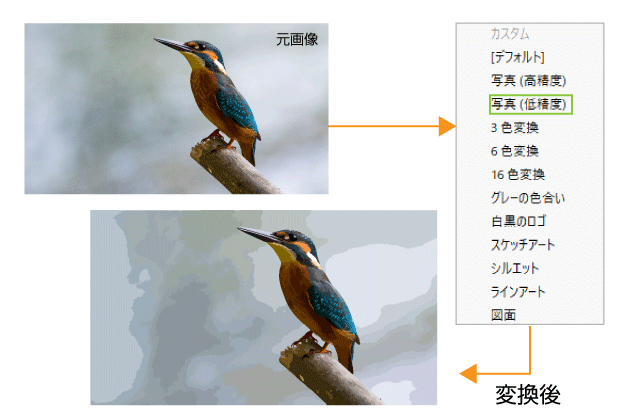 簡単に説明すると写真のデータをイラレのベクターデータに変換する機能で、