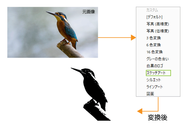この変換は線画のような濃淡のハッキリした画像に使います。